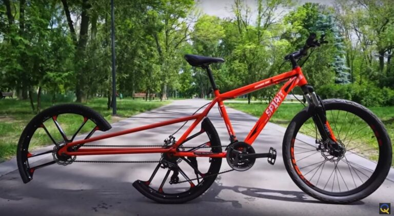 L’idea del suo aspetto assolutamente bizzarro su strada è dello YouTuber ucraino Sergeii Gordieiev, alias “The Q“, che ha semplicemente montato una bicicletta con due mezze ruote invece di una sola ruota posteriore.