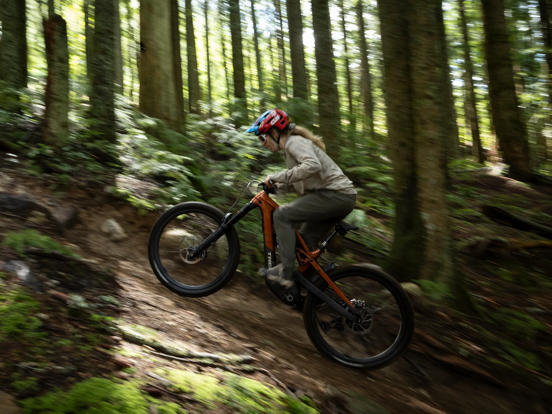 Lo schema sospensivo High Pivot garantisce un’ottima sensibilità e stabilità sia in discesa che in salita, permettendo alla ruota posteriore di adattarsi meglio al terreno. La Slash+ si distingue per l’elevata personalizzazione: la curva di compressione è regolabile tramite un flip chip, mentre la geometria può essere modificata di un grado in entrambe le direzioni. La bici è compatibile con pneumatici e cerchi di grande sezione, ammortizzatori a molla e reggisella telescopici a lunga escursione.