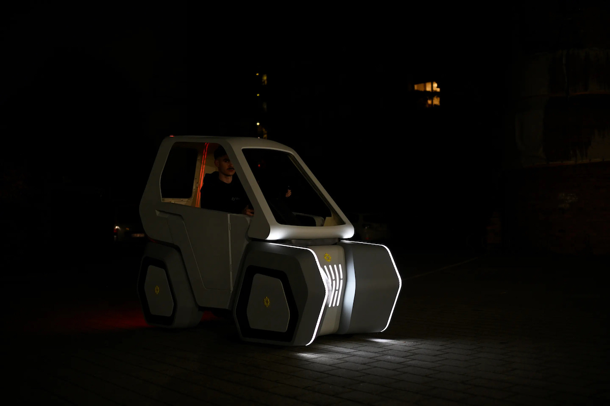 Attualmente si trova nella fase sviluppo, ma c’è già un prototipo pienamente funzionante. Questa quattro ruote è costruita attorno a un telaio tubolare in alluminio con un guscio esterno composto da parti in polimeri stampati in 3D. Anche i sedili e il volante sono stampati in 3D.