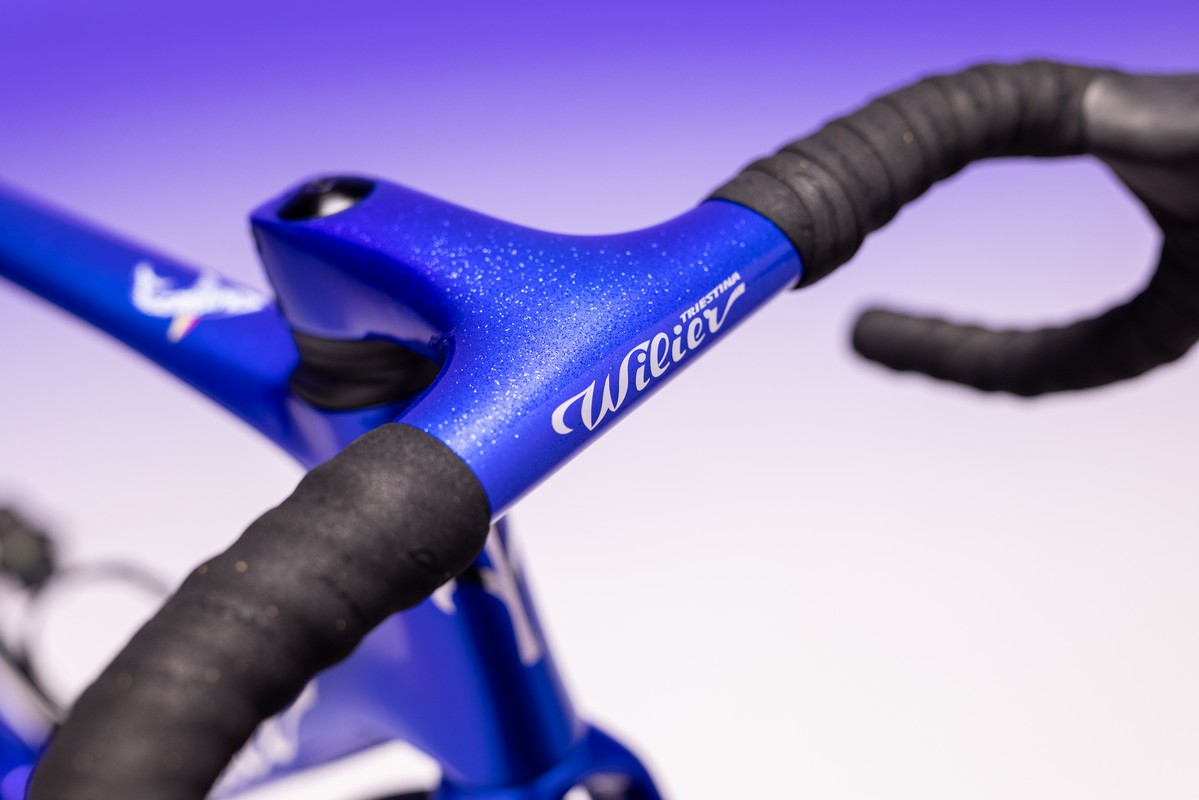 E Wilier Triestina non poteva lasciar trascorrere questi 257 chilometri senza testimoniare l’infinito ringraziamento di chi ama questo sport. La speciale livrea della Wilier 0 SLR creata apposta per l’occasione contiene tutti i colori e i numeri della sua carriera: il blu, che è il colore dell’inesauribile affetto del suo fan club di Messina. Il giallo, che è la tinta dell’agognata maglia che tutti, dall’edizione del 1919 del Tour de France, desiderano indossare. Il rosa e il rosso: i simboli del Giro d’Italia e della Vuelta a España. Osservando con attenzione si potranno poi scovare tante stelle quanti i numeri dei giorni in cui Vincenzo ha indossato il simbolo del primato nei grandi giri.