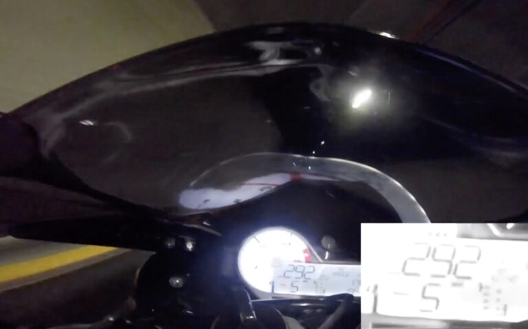 Dal canto suo, la polizia ha successivamente testato il tachimetro della moto, ed è stato appurato che la velocità reale è leggermente inferiore a quella mostrata. Nonostante questo, il motociclista è stato denunciato per un totale di ben 56 infrazioni per eccesso di velocità considerate gravi, che non sono comunque tutte quelle rilevate dalla polizia.