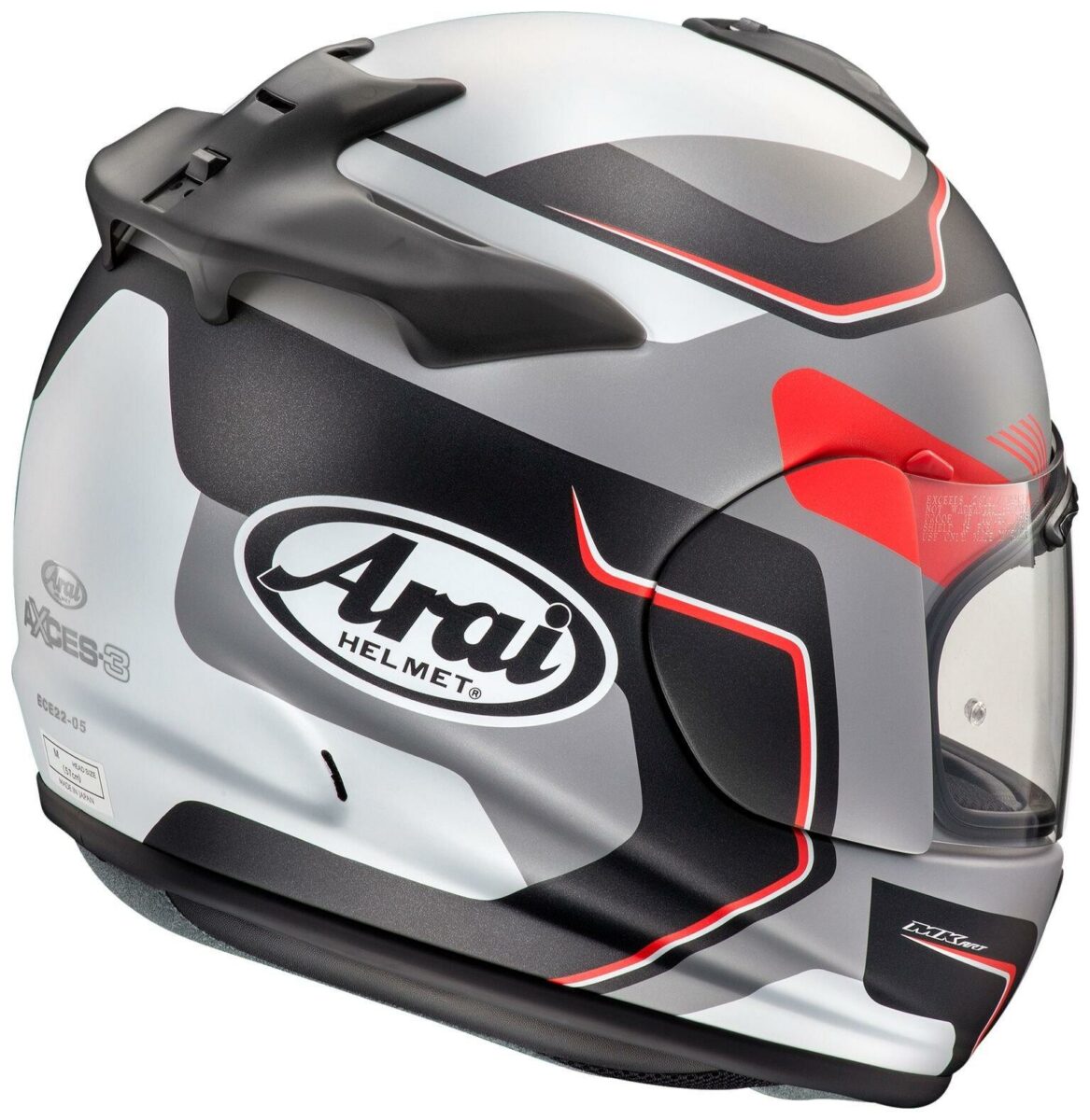 L’ARAI Axces III Sense Red è un casco con performance e caratteristiche tipiche del marchio per sicurezza, qualità e comfort, uniti alla leggendaria durata dei caschi del noto brand. L’ARAI Axces III sulla celebre calotta esterna del Chaser-V, che comprende la fascia di rinforzo Peripheral Belt su fronte e nuca. Anche l’efficace sistema di aerazione deriva dal Chaser-V, così come la calotta in EPS a tre densità differenziate in un unico pezzo – esclusiva mondiale Arai.