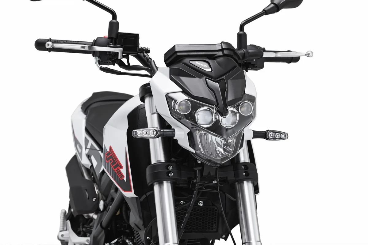 Il serbatoio della Tornado Naked T 125 ha una capacità di 7,2 litri, offrendo un’autonomia sufficiente per lunghe percorrenze urbane e uscite nel weekend. Il design è moderno e accattivante, disponibile nelle colorazioni bianca e nera, con una serie limitata nella tonalità flash green, che aggiunge un tocco di originalità e stile.