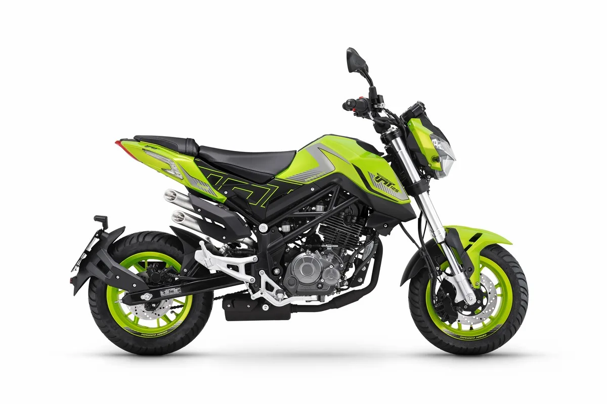 La Tornado Naked T 125 è equipaggiata con un motore monocilindrico Euro5 da 125cc, a quattro tempi e raffreddato ad aria. Questo propulsore, con iniezione elettronica, quattro valvole, singolo asse a camme in testa e doppia accensione, garantisce il massimo contenimento dei consumi in tutte le condizioni di guida. Con una potenza massima di 11,1 CV (8,2 kW) a 9500 giri/min e una coppia di 10 Nm (1,0 kgm) a 7000 giri, questa mini bike offre prestazioni vivaci e divertenti. Il consumo di carburante è estremamente contenuto, con soli 2,1 litri per 100 km, rendendola economica e ecologica.