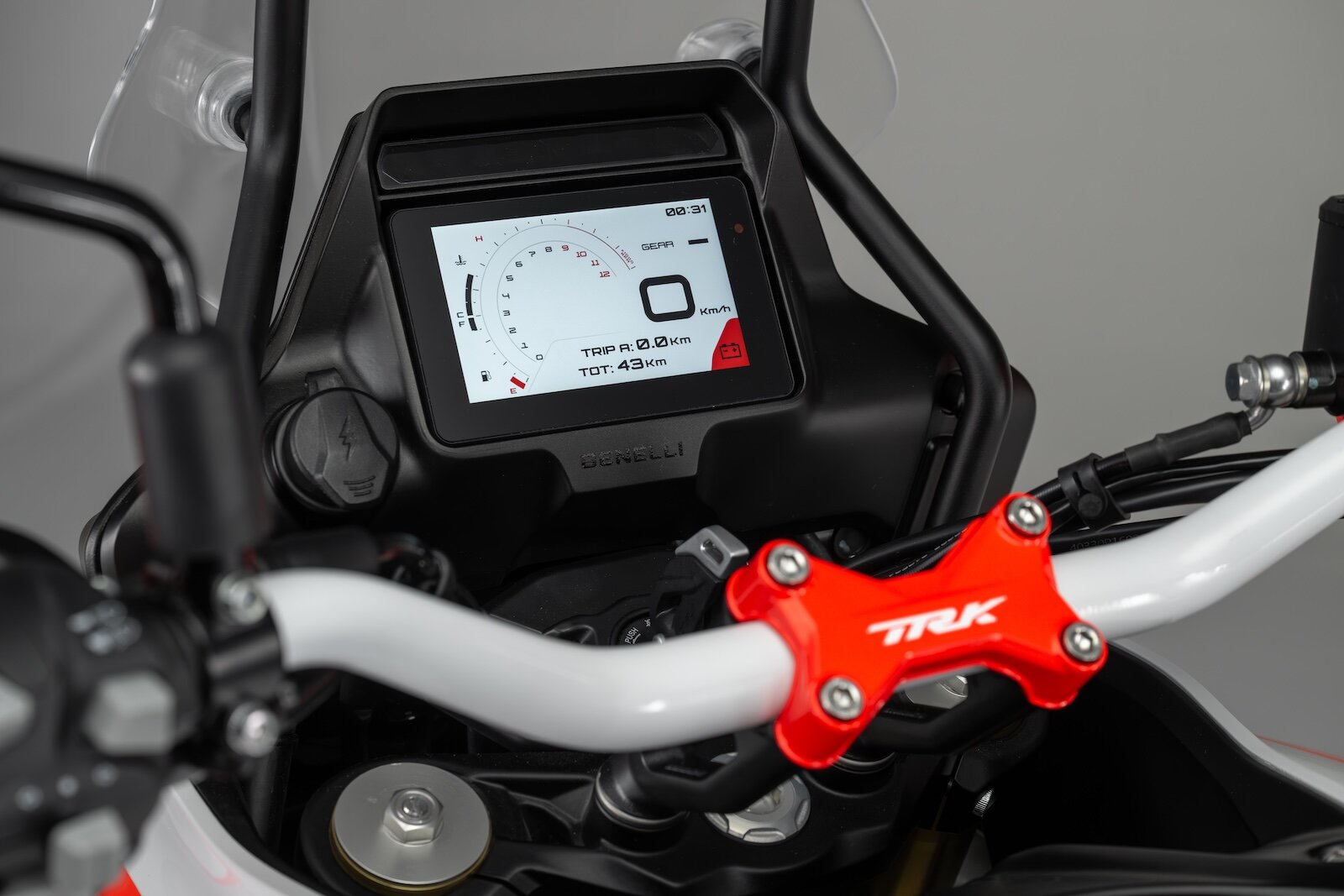 La Benelli TRK 602 X è equipaggiata con un display TFT a colori da 5” ad alta risoluzione, con Bluetooth e Wi-Fi integrati. Il navigatore è disponibile sia in modalità cartografica sia “turn-by-turn”. Due riding mode (Normal e Sport), ABS e traction control disinseribili completano il pacchetto elettronico.