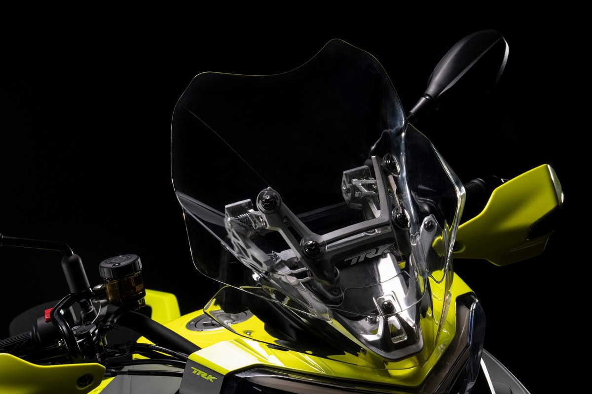 Il design di TRK 800 è affidato a linee fluide, sinuose e fortemente contemporanee, che si sposano con superfici eleganti e ricercate, quasi a voler enfatizzare il crescendo di emozioni che è capace di offrire questa due ruote, avventura dopo avventura. Mantenendo il family feeling della gamma TRK, questa nuova adventure si evolve nello stile con l’intento di rendere iconici alcuni elementi presenti nella versione 500, come il frontale ed il parafango anteriore, che qui presentano forme più affusolate e dinamiche; i fanali a doppia arcata, che nella TRK 800 ritroviamo full led con DRL e la natura muscolosa della moto, che qui si esprime con una nuova proporzione dei volumi.