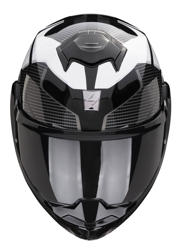Scorpion Exo Tech Evo è dotato di una calotta realizzata in componenti policarbonati avanzati di ultima generazione. In posizione “full-face” (integrale), la visiera garantisce sempre una visione ampia e sicura e (la visiera) si alza automaticamente quando si procede all’apertura della mentoniera.