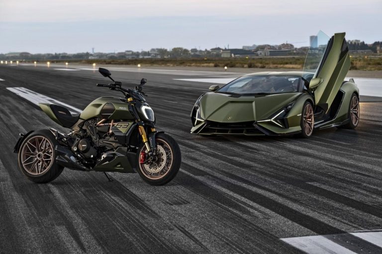 Per realizzare questo progetto, i designer Ducati hanno scelto di lasciarsi ispirare dalla Lamborghini Siàn FKP 37, la vettura più prestigiosa mai realizzata da Lamborghini: disponibile in soli 63 esemplari – ognuno dei quali personalizzato sulle specifiche richieste dei clienti – è un capolavoro di esclusività, design e innovazione. È ispirata dalla Countach, ha linee taglienti, eleganza aerodinamica e una silhouette inconfondibile. La Siàn FKP 37 è la Lamborghini più potente di sempre: 819 CV (602 kW) grazie all’unione di termico ed elettrico.