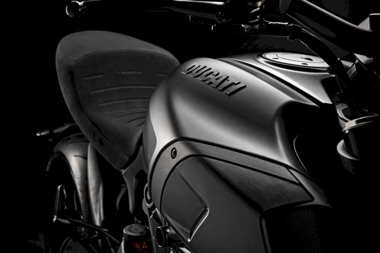 Le tre cover che compongono il serbatoio sono realizzate in lamiera e hanno volumi contenuti nella zona di contatto con la sella, migliorando l’ergonomia per il pilota. Le due grandi prese d’aria in alluminio spazzolato, che si collegano al serbatoio grazie a una cornice di diverso colore, sono tra gli elementi più caratterizzanti, anch’essi ripresi concettualmente dal Diavel di prima generazione. La coda, corta e compatta, integra al proprio interno il maniglione del passeggero estraibile e le luci.