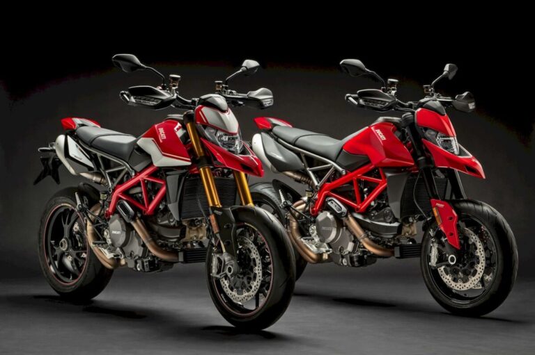 Ancora più performante e con connotazione racing, la Hypermotard 950 SP è dotata di sella piatta, sospensioni Öhlins a corsa maggiorata per garantire un maggiore angolo di piega (+3°), cerchi forgiati Marchesini e Ducati Quick Shift (DQS) Up and Down EVO.