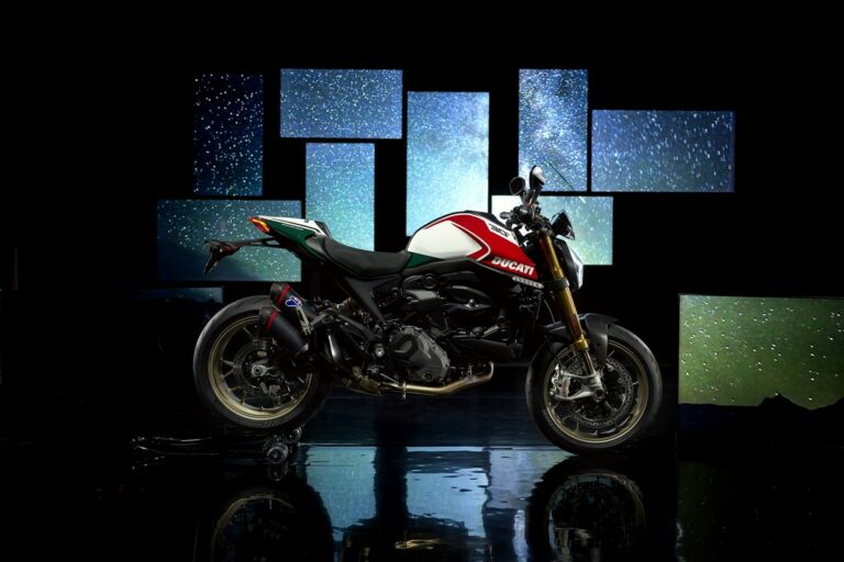 La versione speciale mantiene le caratteristiche iconiche dei modelli Monster: uno stile inconfondibile e il massimo del divertimento su strada. La sua natura si coglie fin dal primo sguardo grazie alla livrea Tricolore 30° Anniversario ispirata ai Monster più sportivi del passato. Questa livrea celebra il made in Italy di cui Ducati è ambasciatrice ed è impreziosita dal colore oro dei cerchi, appositamente realizzati per questo modello e della forcella Öhlins NIX30.