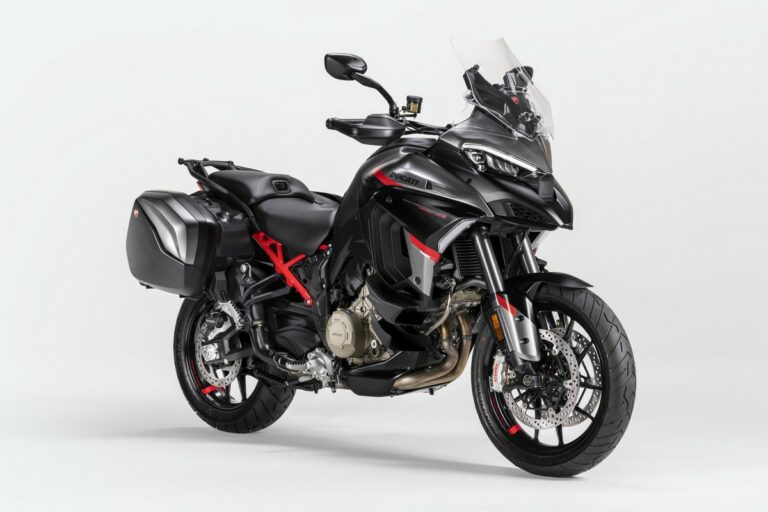 La Multistrada V4 S Grand Tour offre ampie opzioni di personalizzazione, tra cui selle, set di abbassamento moto e accessori per il bagaglio. Gli appassionati possono anche migliorare l’aspetto della moto con parti in fibra di carbonio, leve in alluminio, indicatori a LED dinamici e serbatoi liquido freno e frizione in alluminio.