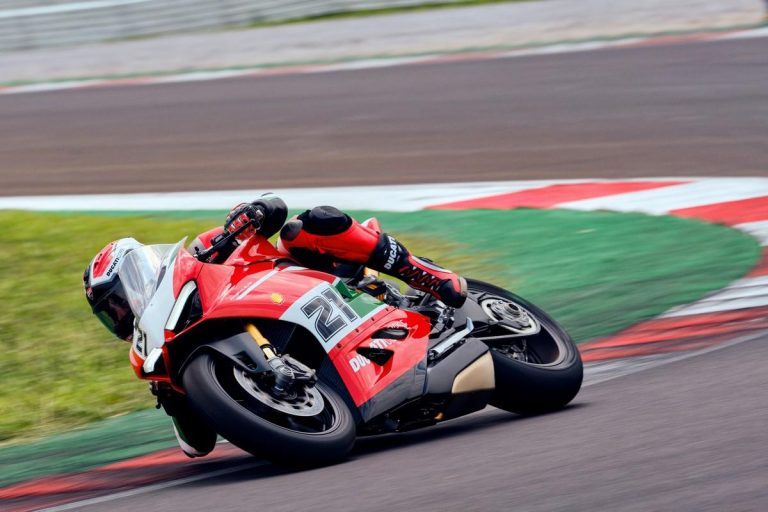 Rispetto alla versione standard, la Ducati Panigale V2 Bayliss 1st Championship 20th Anniversary è anche più leggera di 3 kg, grazie all’adozione della batteria agli ioni di litio e alla scelta della configurazione monoposto che richiama esplicitamente il look della moto da gara (sella passeggero e pedane sono disponibili nell’equipaggiamento a corredo).