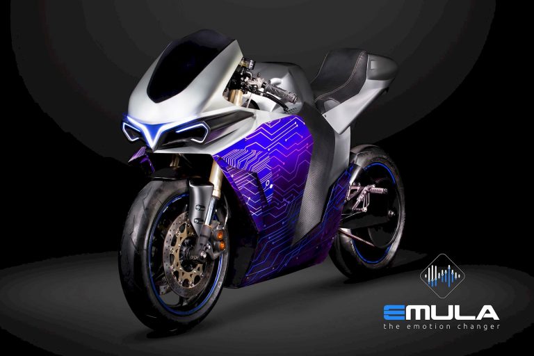 La dashboard di Emula è costruita intorno a un display touchscreen, molto pratico, viste le numerose opzioni disponibili, il motociclista potrà anche usare un joypad sulla parte destra del manubrio. La rapportatura del cambio rispecchia il motore selezionato così come la velocità massima. Un 250 2 tempi arriverà in sesta marcia a 200 km/h a 11.000 giri, mentre un 600 4 cilindri vedrà i 14000 giri oltre i 250 km/h. L’emulazione è totale: il McFly provvede anche a “murare“ il motore quando si arriva al regime del limitatore.
