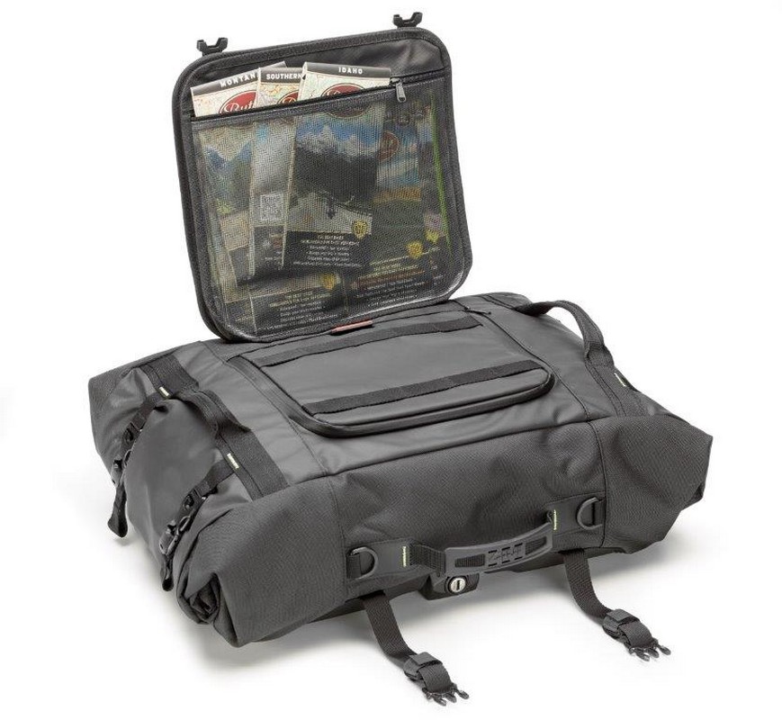 GRT723 top bag 40 lt è pensata per essere utilizzata al posto del top case posteriore su moto enduro-off road, ed è dotata di sistema di aggancio/sgancio Monokey ed è realizzata in poliestere 1200D W/R ad alta tenacità con inserti in Hypalon, materiale esterno ad alta resistenza ai raggi UV e fondo in PE termoformato.