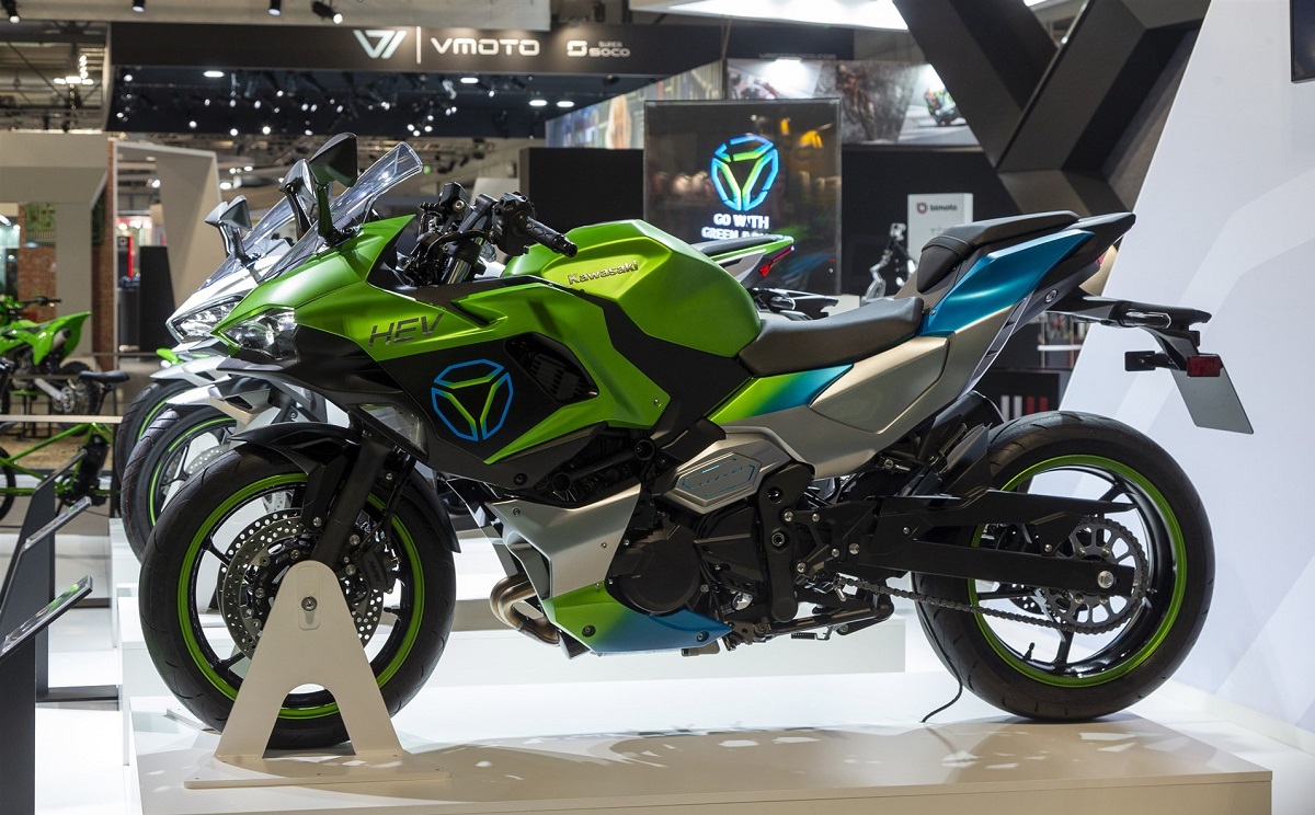 Il verde non è solo il colore di punta per Kawasaki. E’ una vera e propria strategia verso l’ecologia, che punta sull’ibrido, sull’elettrico e sull’idrogeno, e che abbiamo visto chiaramente in questi giorni tra i padiglioni di Eicma 2022.