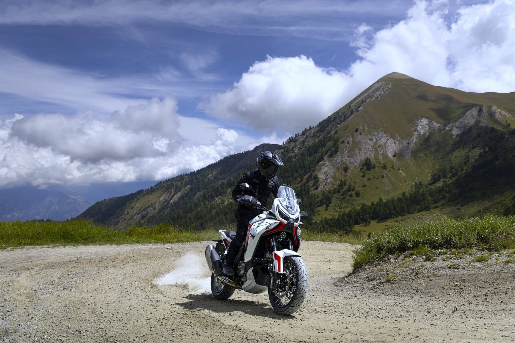 La moto si affida a un telaio a doppia trave in acciaio ad alta resistenza, mentre il forcellone in alluminio ospita una sospensione posteriore monoammortizzatore regolabile elettronicamente. All’anteriore lavora una forcella Marzocchi da 50 mm, anch’essa a controllo elettronico semiattivo. Il tutto garantisce una guida precisa e confortevole, sia in viaggio che in fuoristrada leggero.