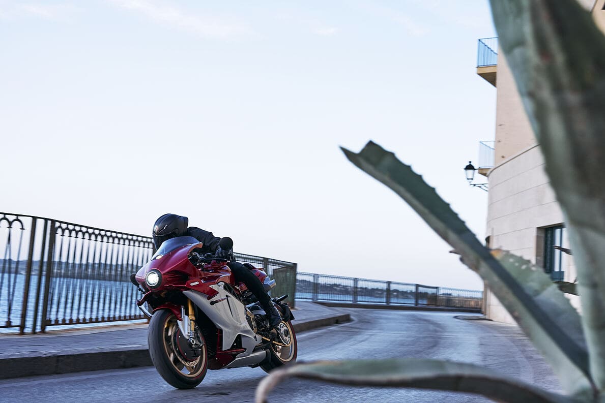 Il sistema di gestione del motore, MVICS 2.1, comprende otto iniettori e un corpo farfallato di 50 mm. L’elettronica è stata calibrata specificamente per questo modello, con otto livelli di controllo di trazione, controllo dell’impennata e quattro modalità di guida: Rain, Sport, Race e Custom. Il cambio elettronico MV EAS 4.0 permette cambi marcia rapidi sia in salita che in scalata.