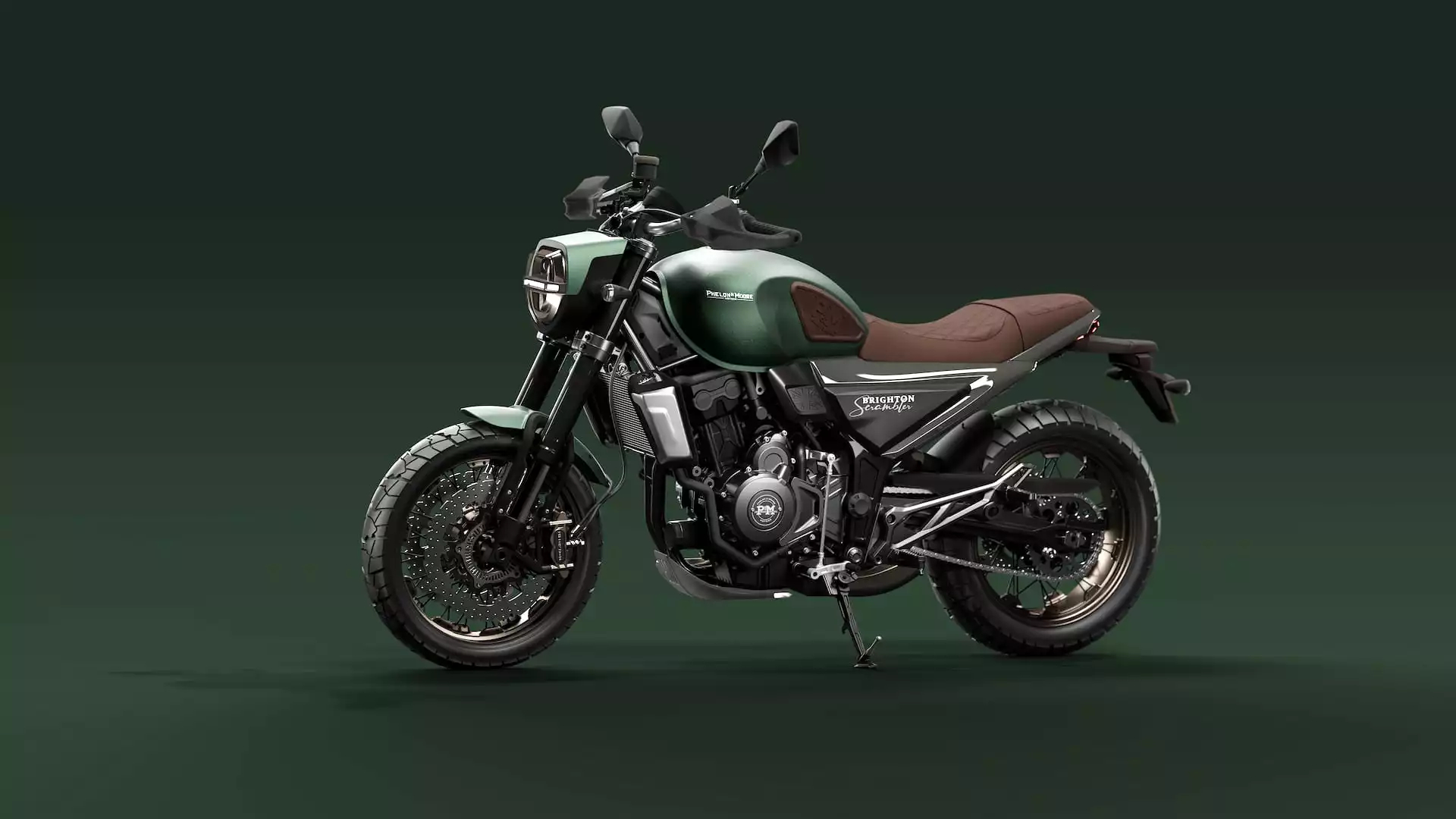 Accanto alla roadster, Phelon & Moore propone una variante scrambler che mantiene il motore della Brighton-6 ma adotta pneumatici Panther Adventure montati su cerchi a raggi, con rapporto 70/30 strada-fuoristrada.