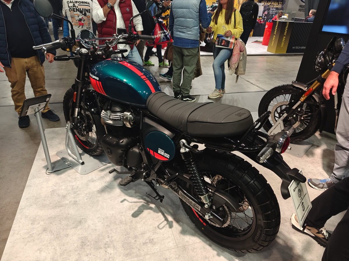 La Bear 650 si basa sulla piattaforma della Interceptor 650, ma si distingue per uno stile vintage che richiama le scrambler d’altri tempi, mantenendo un’estetica essenziale ma robusta. Il look della moto richiama i modelli off-road degli anni ’60, con dettagli classici come le linee pulite del serbatoio e l’impianto di scarico 2-1. Il silenziatore singolo non solo dona alla Bear 650 un suono profondo e distintivo, ma contribuisce a mantenere il peso contenuto, migliorando la maneggevolezza sui percorsi accidentati.