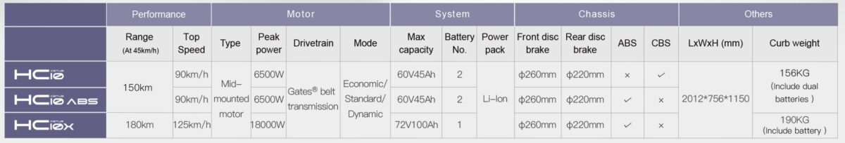 E i numeri ci sono, con 150 km di autonomia massima ed alla velocità massima di 90 km/h, ottenuta grazie ad una potenza di picco di 6,5 kW. Ma non è tutto, perchè nella versione HC10 X si arriva alla velocità massima di 125 km/h con uno scatto da 0 a 50 km/h in 2,6 secondi.