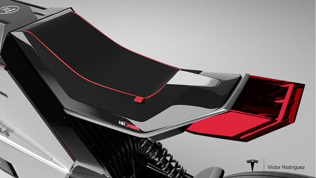 Tesla Model M non vuole essere solo un mezzo di trasporto. Infatti, la moto è pensata anche per essere un “deposito removibile” che serva anche da zaino da portarsi dietro quando la vettura è ferma.