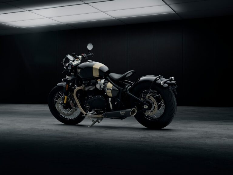 Il motore bicilindrico Bonneville da 1.200cc eroga una potenza di 78 CV a 6.000 giri/min e una coppia massima di 106 Nm a 3.750 giri/min, garantendo una risposta vivace ai bassi regimi. La modalità “Sport” è affiancata da opzioni “Road” e “Rain” per adattarsi a ogni esigenza di guida. Gli scarichi Akrapovič in fibra di carbonio completano l’esperienza con un sound profondo e distintivo. La tecnologia avanzata si integra perfettamente con il design classico. Il controllo di trazione migliora la sicurezza senza intaccare lo stile. I fari posteriori in stile “bullet” mantengono un design minimalista pur garantendo un’illuminazione efficace.