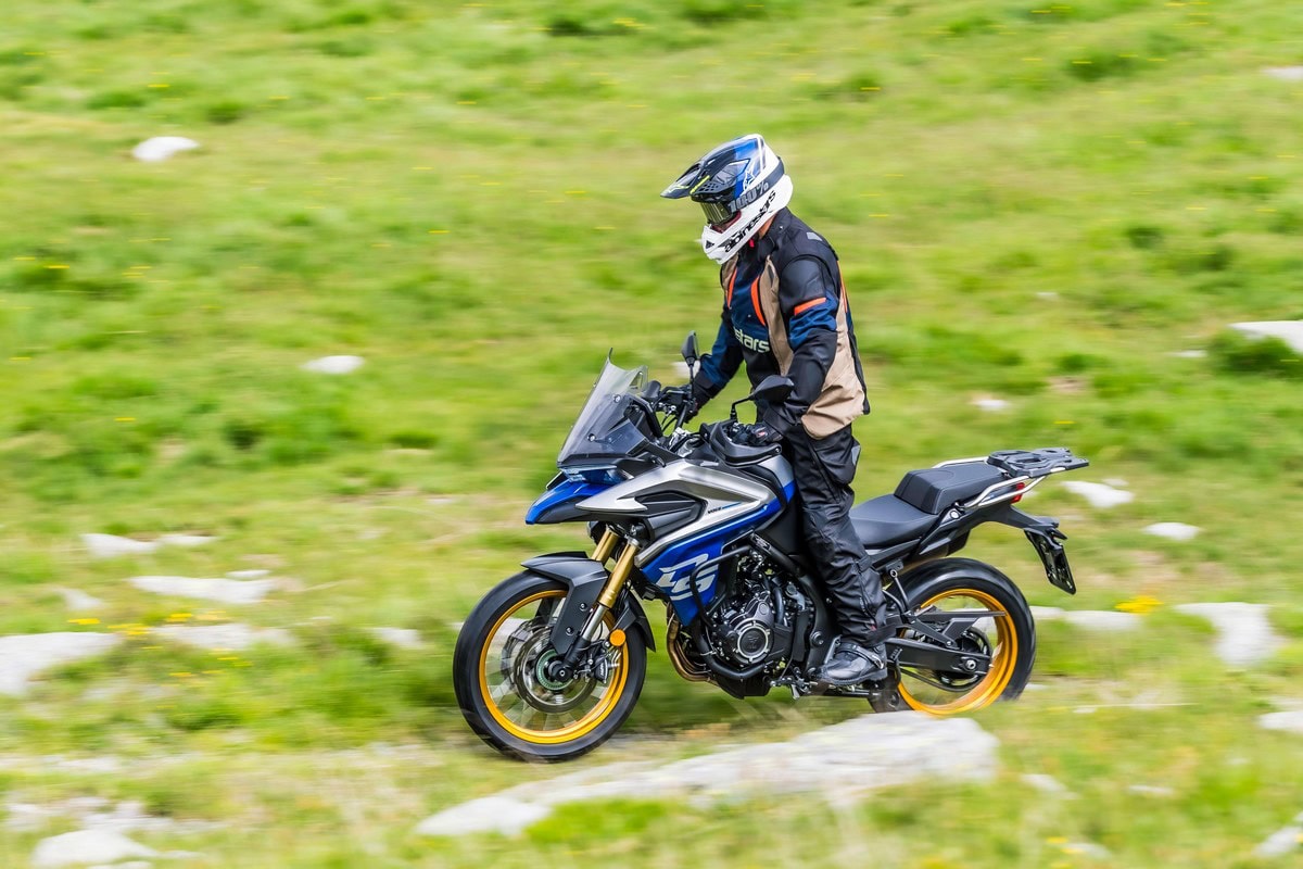 Le ruote a raggi sono tubeless e calzano pneumatici Metzeler Tourance da 110/80 – 19” per l’anteriore e 150/70 – 17” per il posteriore. L’impianto frenante firmato Nissin è composto da una coppia di dischi anteriori da 298 mm di diametro con pinze a doppio pistoncino e da un disco posteriore da 240 mm di diametro sul quale lavora una pinza a singolo pistoncino. Il peso di 194 kg a secco, la sella posizionata a soli 815 mm da terra, le dimensioni di 2.215 x 840 x 1.365 mm e l’interasse di 1.450 mm fanno della Valico 525DSX una moto adatta ai rider di qualsiasi statura ed esperienza.