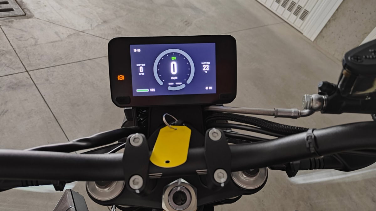 Il manubrio si impugna bene e al centro c’è anche un display ben definito dove poter monitorare la velocità e anche il tipo di guida che si è scelto.