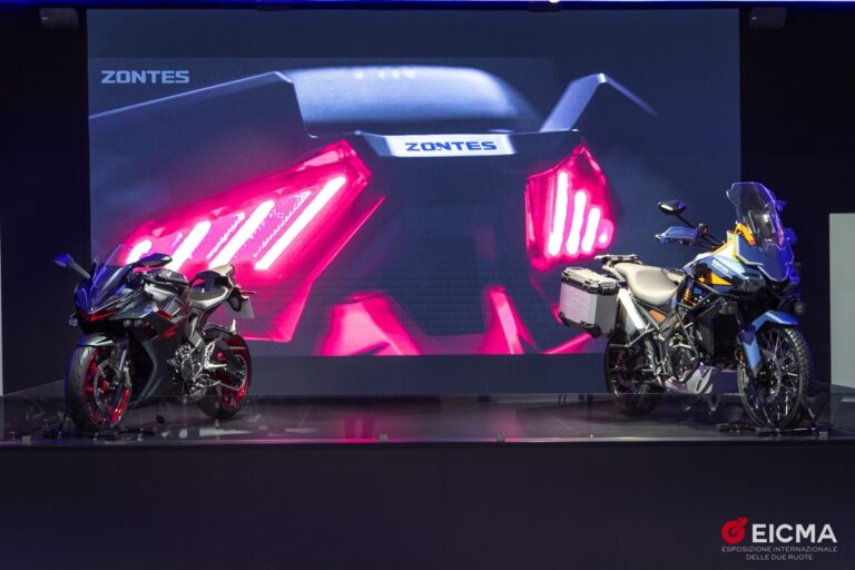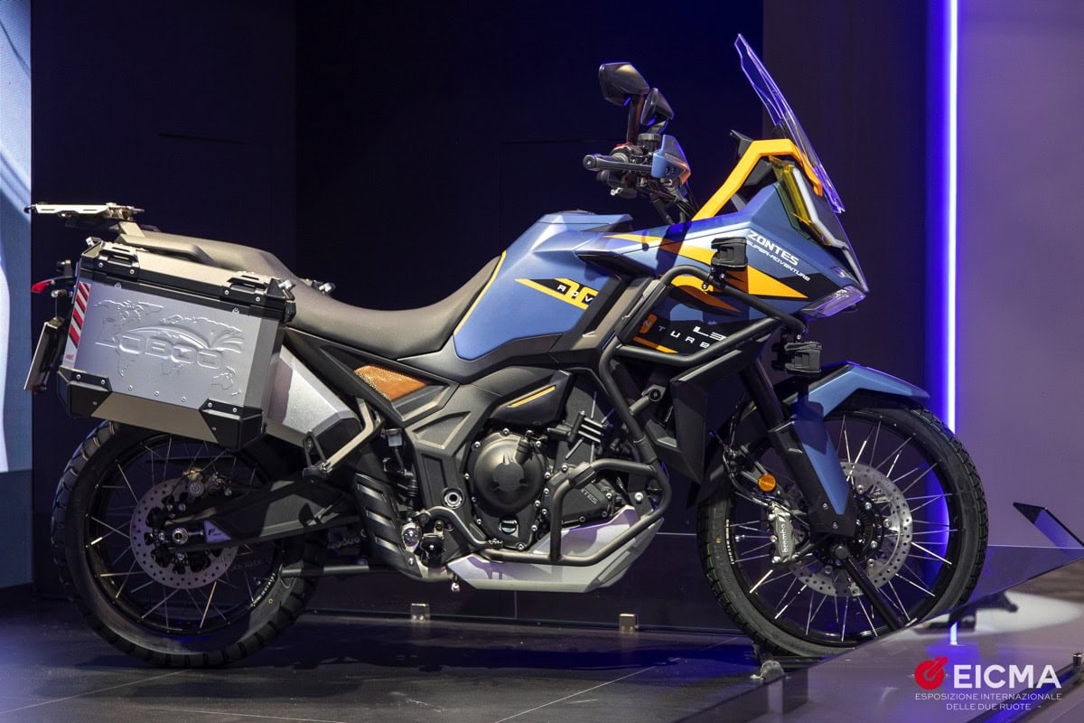 Zontes è un marchio appartenente al Gruppo cinese Guangdong Tayo Motorcycle Technology, con una storia che affonda le radici nel 2003. Inizialmente, Tayo produceva motocicli e scooter di piccola cilindrata, variando tra i 125 cc e i 250cc, ma con l’etichetta Zontes, il marchio sta rapidamente alzando l’asticella delle ambizioni. Iniziata solo tre anni fa con l’introduzione di motori monocilindrici da 310 cc, caratterizzati da un design vistoso, Zontes ha fatto il salto ai motori da 350 cc l’anno scorso, sia per le moto che per gli scooter, ottenendo un notevole successo.