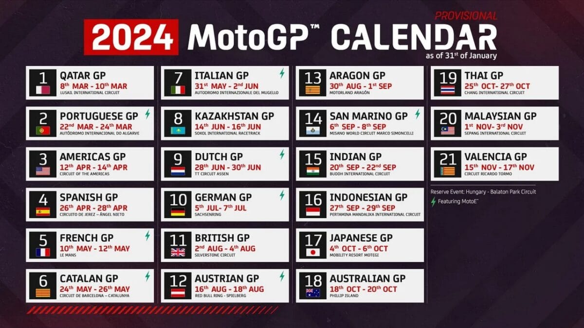 Gli appassionati di MotoGP e Formula 1 dovranno dividersi. Per ora infatti sono 10 le sovrapposizioni con i GP di F1: Qatar, Portogallo, Catalogna, Olanda, Germania, Aragon, India, Australia, Thailandia e Malesia.
