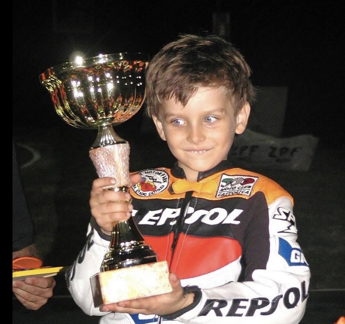 Ci puoi dire di più sulle foto di te con la tuta Repsol Honda da bambino?