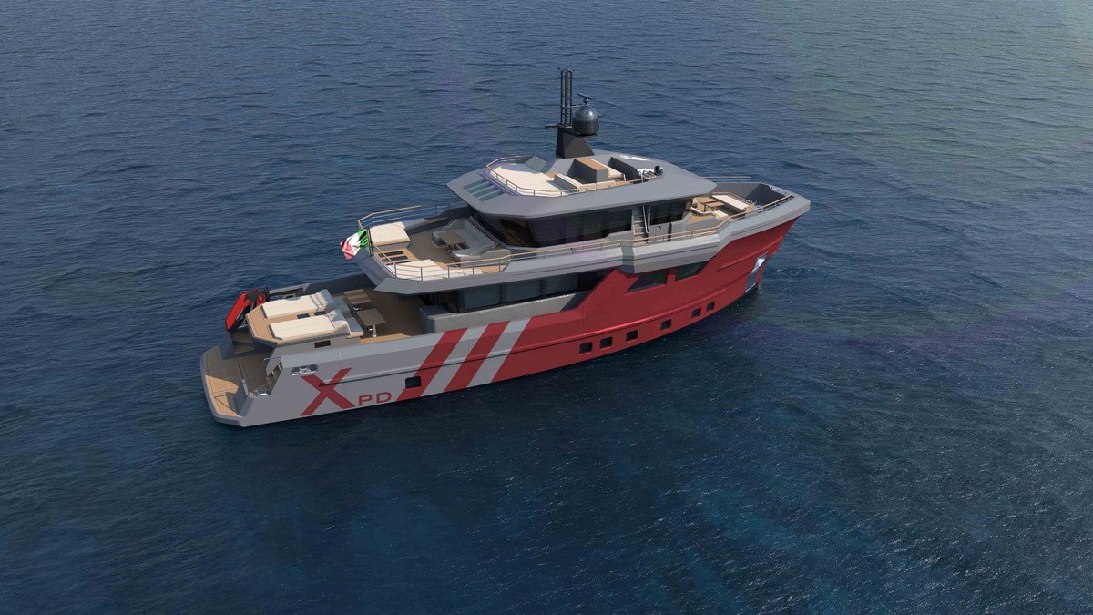 L’imbarcazione, realizzata interamente in acciaio, vanta una lunghezza di 28 metri fuori tutto e verrà omologata come unità da diporto. XPD88 si caratterizza per gli ampi volumi, insoliti per una larghezza di 8,5 metri e la forte connotazione stilistica.