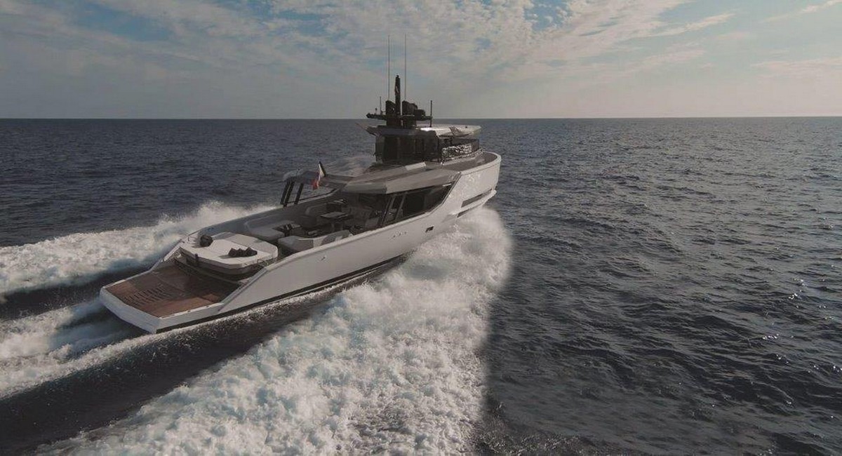 Esistono più configurazioni, a tre, quattro o 5 cabine: l’unità presente a Cannes dispone di 4 cabine, con un layout che garantisce un livello di privacy tipico di yacht di dimensioni maggiori grazie a percorsi totalmente dedicati alla crew. La velocità massima con i due motori optional Volvo Penta IPS 1350 si attesta sopra ai 23 nodi mentre l’autonomia a una velocità di 10 nodi è superiore alle 1.200 miglia nautiche. Su questa unità sarà possibile ammirare la nuova opzione di layout “Jardin d’Hiver” che permette la chiusura ed il riscaldamento della zona dining dell’aft deck così da permettere una maggiore vivibilità dell’area anche nei periodi invernali ed in condizioni meteo avverse.
