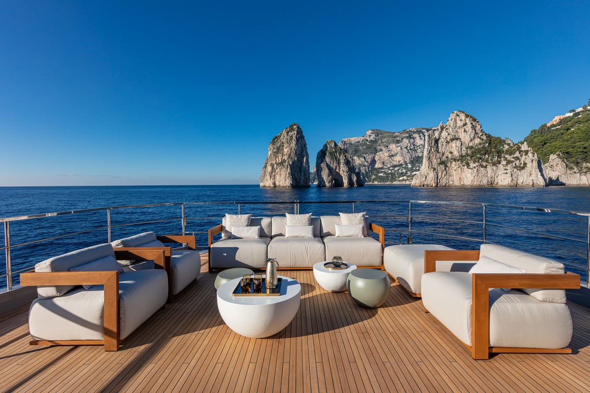 Varato questa estate nelle bellissime acque di fronte alla penisola sorrentina, Mabelle dispone di quattro grandi cabine e soprattutto offre ai suoi ospiti oltre 200 mq tra aree interne ed esterne da vivere nei più diversi momenti della giornata, con un comfort ai massimi livelli e la possibilità di godere di viste mozzafiato dai ogni ponte. I toys e i tender sono stivati nel garage laterale e il lazzaretto è eccezionalmente grande, per cui si ha una grande libertà di movimento, grazie all’assenza d’ingombri.