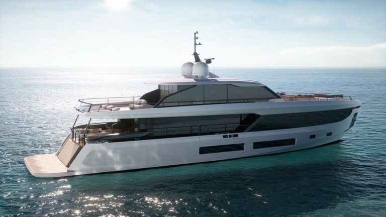 L’Infinity Skydeck di Grande 30M compie la naturale evoluzione di quello realizzato dal Cantiere per Grande 36M e per la prima volta da “semi” diventa completamente walkaround. Il ponte superiore dello yacht, infatti, corre da poppa fino all’estrema prua su un unico livello, permettendo di godere pienamente di questo spazio e spingendo all’estremo il concetto di fluidità tra esterni e interni: la Glass House dell’Upper Deck si trasforma, grazie alle finestrature a totale scomparsa, in una veranda aperta sui tre lati che mette in comunicazione la grande lounge di poppa con l’Infinity Pool che, a prua, si affaccia sul mare.