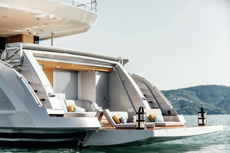 Grande 36M è un superyacht caratterizzato da innovative soluzioni di design, come l’Upper Deck semi-walkaround che corre da poppa fino a quasi all’estrema prua su un unico livello, una rivoluzione del layout tradizionale e la conquista di un ambiente prima inesistente su una barca di queste dimensioni.