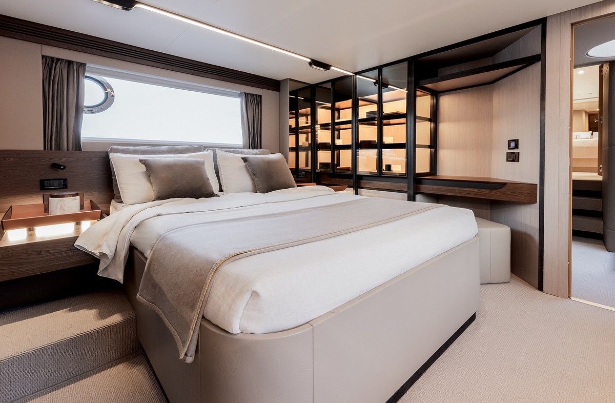Yachtique ha realizzato gli interni del nuovo S7 portando suggestioni di ambiti diversi, col fine di ottenere uno stile residenziale chic senza mai dimenticare la destinazione d’uso dell’oggetto-barca.