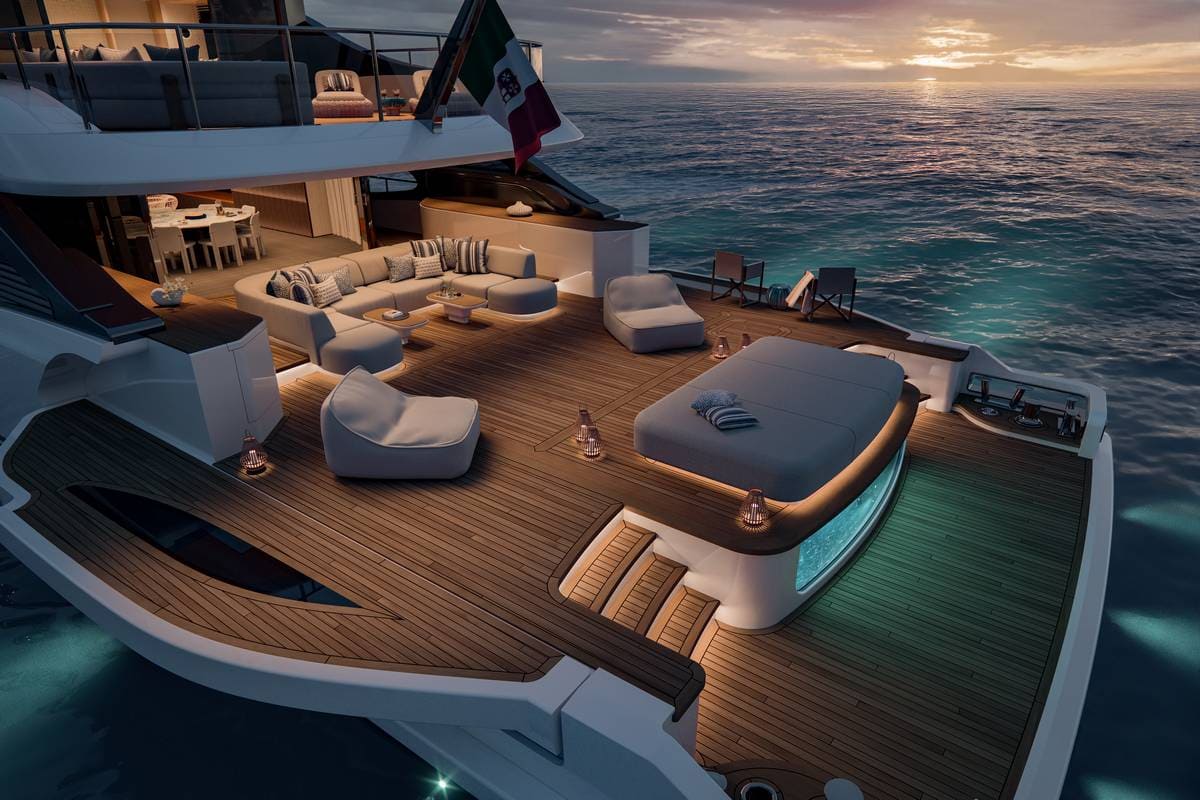 Con i suoi 42 metri di lunghezza, questo modello rappresenta la naturale evoluzione del concetto introdotto dal primo Oasis 40M, che ha saputo ridefinire l’esperienza di bordo con un approccio più rilassato e immersivo. Già venduto a un armatore che ne ha colto la visione pionieristica, il primo esemplare sarà varato nel 2027.