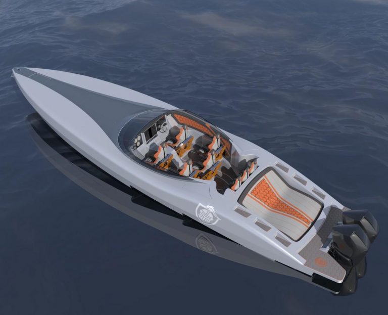 Il risultato è una carena talmente sottile che, con un peso a vuoto di 3100 kg, la barca sarà circa 30% più leggera di ogni altro modello di questo tipo sul mercato.