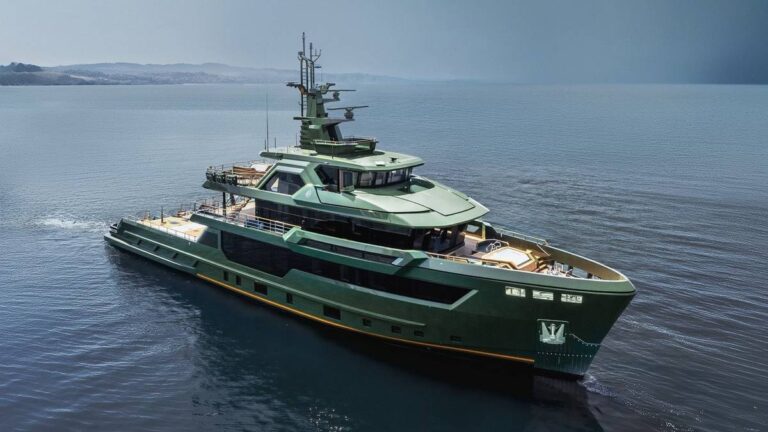Con interni in legno antico, sughero e materiali naturali, include una parete verde di muschio, pavimenti tridimensionali, e un sistema SCR IMO Tier III per ridurre le emissioni. Grazie ai motori Caterpillar C32 Acert, offre un’autonomia di 5.500 miglia nautiche a 10 nodi, ridefinendo il concetto di yacht consapevole e sostenibile.