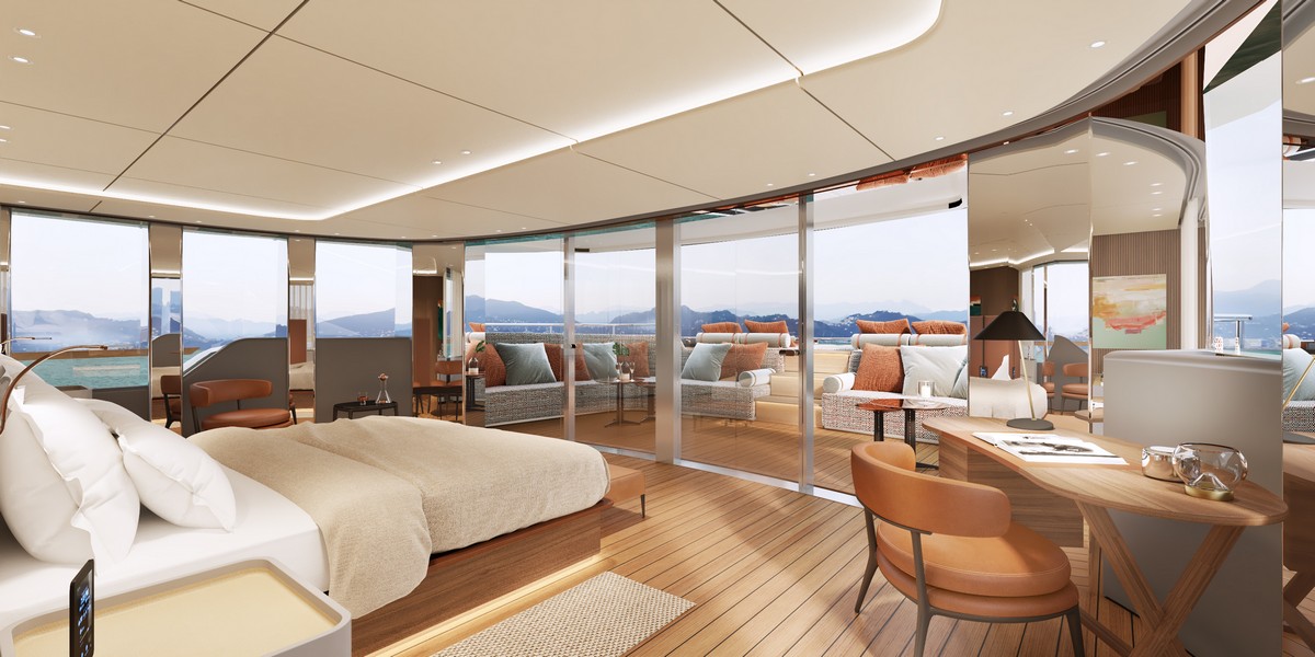 Il design degli interni si sviluppa secondo un concept volto alla ricercatezza dei dettagli e all’utilizzo di materiali pregiati e sostenibili, tra cui il cuoio naturale, utilizzato sia nelle finiture sia nei dettagli più ricercati degli arredi custom design, risultato della grande abilità artigianale delle maestranze del cantiere.