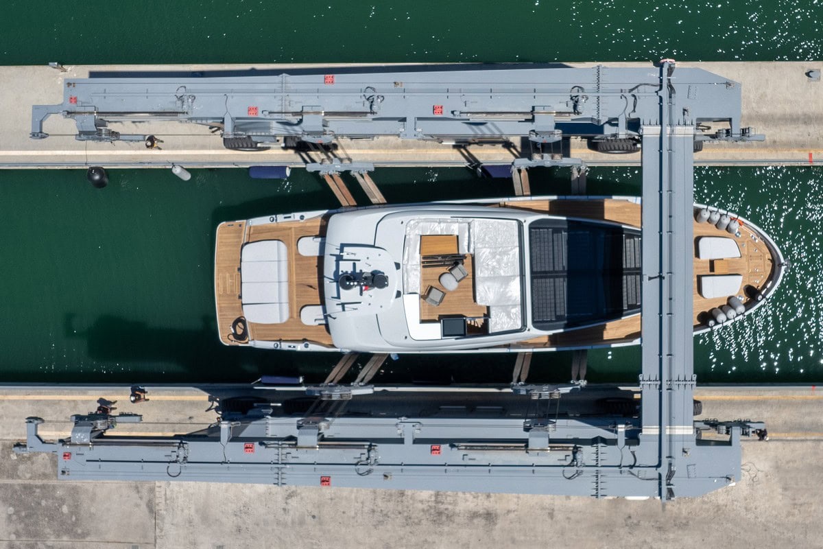 Extra X86 My Soney è stata sottoposta ad un vasto refit gestito direttamente da Palumbo Superyachts Ancona, l’atelier della conversione, riadattamento, manutenzione di imbarcazioni dai 26 agli 80 metri. My Soney è stata sottoposta ad una verniciatura completa dello scafo e della sovrastruttura che ora vanta un grigio gesso.