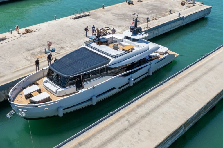 Extra X86 Fast My Soney è lo yacht che vanta volumi eccezionali in rapporto alla lunghezza, comodità assimilabili a quelle di una villa sul mare, consumi bassissimi per una grande autonomia di navigazione e ambienti che favoriscono un contatto diretto con il mare. Il design esterno è di Guida Design mentre gli interni sono dell’ufficio stile di Palumbo Superyachts e Guida Design.