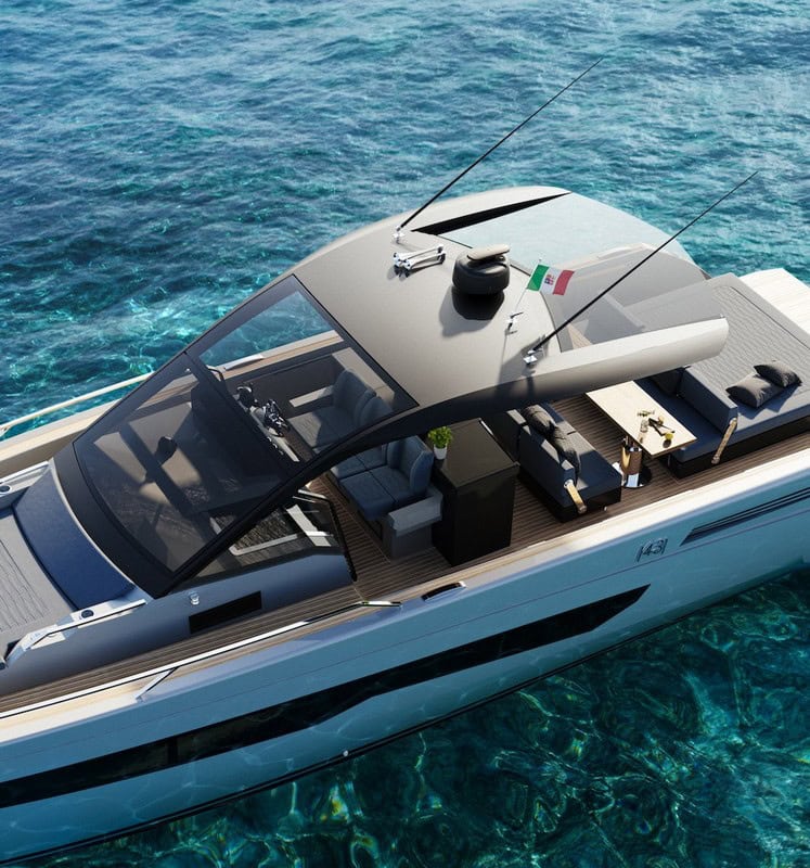 L’hard top, collegato direttamente con il parabrezza, chiude l’ambiente nella zona frontale, consentendo al pilota di navigare al riparo dagli agenti atmosferici, senza però rinunciare al gradevole ricambio d’aria e alla frescura. La nuova struttura in vetroresina è stata pensata per interferire in modo minimo, lasciando ampio spazio ai cristalli e alla luce che entra prepotente, dando una percezione di leggerezza, come se non ci fosse “niente sopra se non il cielo”. Il panorama sarà mozzafiato.