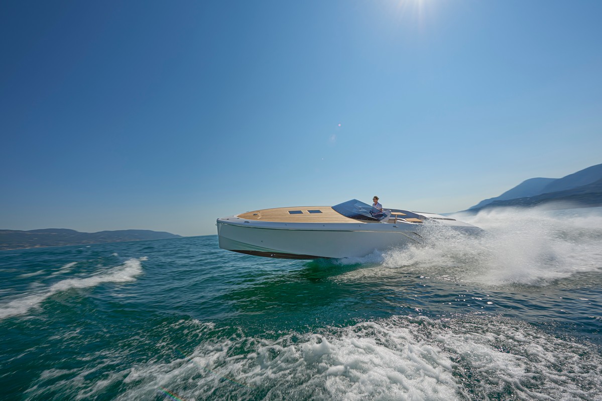 Daycruiser di quasi 8 metri, 740 Mirage Air è un elegante center consolle capace di offrire diversi scenari ai suoi ospiti, trasformandosi in pochi secondi da piattaforma da bagno e prendisole a lussuosa lounge da aperitivo o picnic. Con due differenti possibilità di motorizzazione e batterie in dotazione, riesce ad offrire un’autonomia massima di 110 km a velocità di crociera: regalando un’intera giornata in mare, senza pensieri e senza necessità di rifornimento.