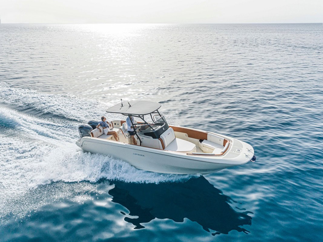 FX270 fa parte della gamma di modelli Capoforte con motore fuoribordo (può montarne uno da 350 cv o due da 150 cv) e si presenta con un caratteristico “taglio all’americana”, quindi battagliola molto pulita, lineare e di derivazione “fisherman”, ma interpretata in stile italiano,