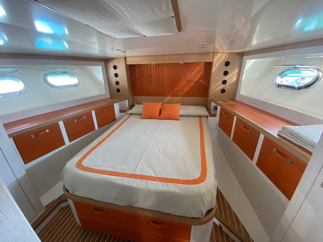 Sottocoperta, il layout è stato completamente rinnovato per ospitare due ampie cabine che offrono comfort e spazio ineguagliabili. L’armatore, appassionato di auto storiche, ha voluto rendere omaggio alla mitica Ford GT40 che negli anni Sessanta lanciò (e vinse) la sfida alla Ferrari nella mitica 24 Ore di Le Mans, scegliendo per lo yacht i colori iconici che hanno segnato la storia delle corse automobilistiche. Questa scelta di design non solo arricchisce esteticamente il “Fury” ma ne fa anche un ponte tra diverse passioni.