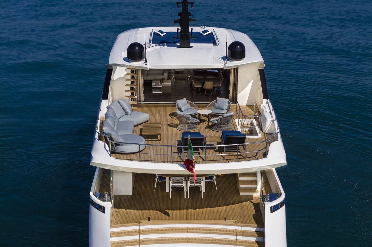 Il livello di personalizzazione si spinge fino alla spiaggetta di poppa ospitante una sauna a livello del mare: gli ospiti possono rilassarsi nel calore di una vera e propria sauna “galleggiante” e un attimo dopo, in pochi semplici passi, tuffarsi nell’acqua rinfrescante del mare.