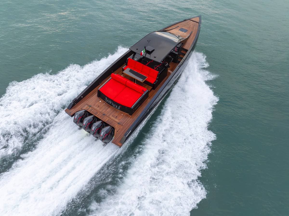 All’esterno, il pozzetto è un’area versatile, dotata di tavolo in carbonio, piano cottura e frigoriferi, perfetto per momenti di convivialità. Le sedute, progettate per resistere alle alte velocità, si trasformano in comodi prendisole una volta all’ancora. Inoltre, è possibile installare coperture personalizzate o fiancate abbattibili per ampliare le aree relax.